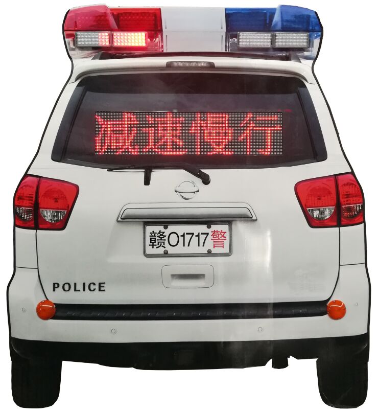 這款“仿真警車警示裝置”,是參照通用警車后背視覺圖樣,采用等比例尺寸噴繪圖案制作成面板,并按照實(shí)物的現(xiàn)狀布局,還配置了“后窗字幕”、“剎車燈”、“車頂警燈”等LED發(fā)光裝置,因?yàn)橥ǔTO(shè)置在取電不方便的偏遠(yuǎn)路段,所有設(shè)計(jì)采用太陽能供電,不仔細(xì)看就像真警車一樣,特別是在動(dòng)態(tài)行駛狀態(tài)中,難怪司機(jī)們都以為遇到巡邏警車了。