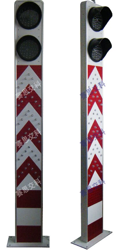 2、基本說明:一體式柱體結(jié)構(gòu),標(biāo)志版面圖案中設(shè)置紅滿屏燈、紅滿屏燈,交替閃爍,柱體上設(shè)置警示發(fā)光管,采用太陽(yáng)能蓄電池供電,設(shè)置于危險(xiǎn)路段分道、高架匝道上下口等。