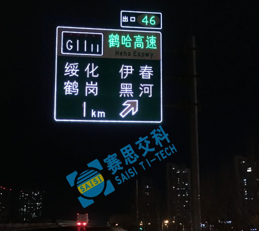 在高速路、快速路及偏遠(yuǎn)的農(nóng)村路,常常因?yàn)闊o(wú)法提供供電電源,部分耗電較大的內(nèi)置照明類(lèi)指路主動(dòng)發(fā)光標(biāo)志無(wú)法安裝,本款“大型指路類(lèi)點(diǎn)陣型主動(dòng)led發(fā)光標(biāo)志”,屬于“led發(fā)光標(biāo)志”范疇,因其耗電相對(duì)較少,可采用太陽(yáng)能蓄電池供電方式,滿(mǎn)足標(biāo)志發(fā)光電能供應(yīng),常常被運(yùn)用在上述路段、區(qū)域。