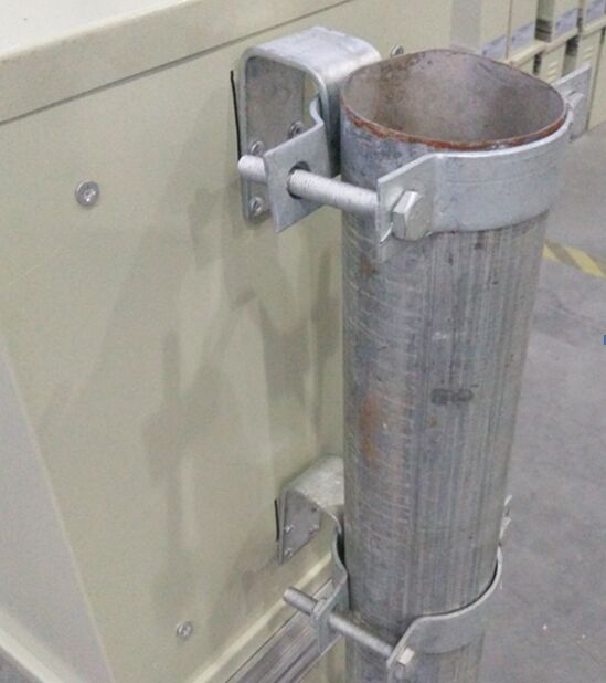 3、控制機箱通常設置于標志立桿底法蘭朝上約2.5米處,使用半片對夾抱箍固定,注意查看配套螺桿,另不同標志尺寸、發(fā)光面對應不同的控制機箱,選擇時應仔細核對對應標簽。