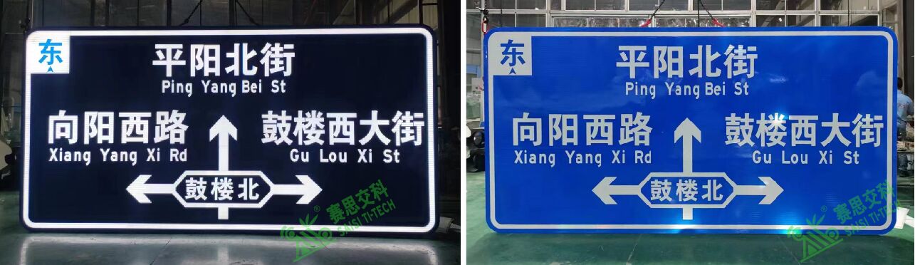 背透式主動發(fā)光標(biāo)志,是一種內(nèi)置照明標(biāo)志,即通過內(nèi)置光源照射,光源從標(biāo)志面版層的后背穿過(pass through),增強(qiáng)標(biāo)志版面關(guān)鍵信息的亮度,來提升標(biāo)志視認(rèn)的一種發(fā)光標(biāo)志制作工藝。背透式發(fā)光標(biāo)志,按其面板層的發(fā)光面積占比大小,又分為“半透型”和“全透型”兩款。半透型背透式主動發(fā)光標(biāo)志,其面板僅增強(qiáng)了關(guān)鍵信息內(nèi)容的發(fā)光,標(biāo)志底板不發(fā)光,僅保留了逆反射功能,其優(yōu)點在于標(biāo)志視認(rèn)的對比度強(qiáng);全透型背透式主動發(fā)光標(biāo)志,其整個面板層都發(fā)光,也同時保留不發(fā)光時的逆反射功能,其優(yōu)點在于標(biāo)志整體的亮化效果更醒目。