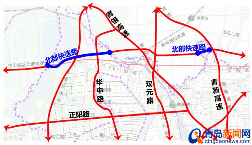 項目二:全長約7.54公里的北部快速路項目,城陽段投資約29.5億元