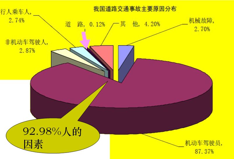海因里希用多米諾骨牌來形象地描述事故因果的連鎖關系:在多米諾骨牌系列中,一只骨牌被碰倒了,其余的骨牌將相續(xù)按波的方向被碰到,如果移去其中一只骨牌,則連鎖反應被破壞,事故被終止。他的理論人為,防止人的不安全行為,消除非人為因素的不安全狀態(tài),以此中斷事故連鎖進程,從而規(guī)避事故發(fā)生。根據《墨菲定律》的描述,交通要素中一旦有設計缺陷存在,發(fā)生事故是時間累計后的必然結果。由于遺傳因素、身體因素、心理因素等多重作用,會對人的判斷力、行動力產生影響,在調取大量事故資料研究后發(fā)現(xiàn),導致事故發(fā)生的直接原因中,人為因素的影響占據很大一部分。